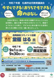 ●令和7年度札幌市幼児教育講演会テーマ「今すぐできる!おうちでもできる!命のはなし」